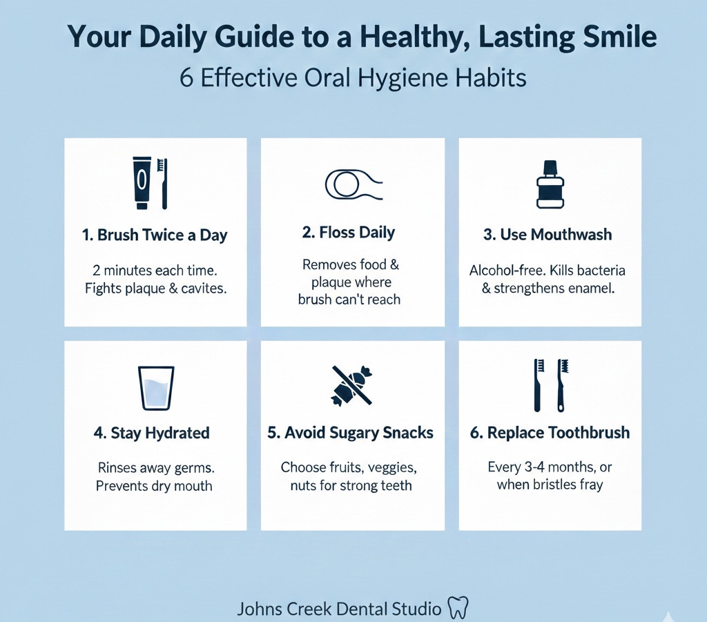 If you are concerned about any of these issues or would like to come in for a routine check-up, contact us today at Johns Creek Dental Studio. We are here to help you maintain a beautiful and healthy smile for years to come. Don’t wait, call us to schedule your appointment now and get the smile you have always wanted!