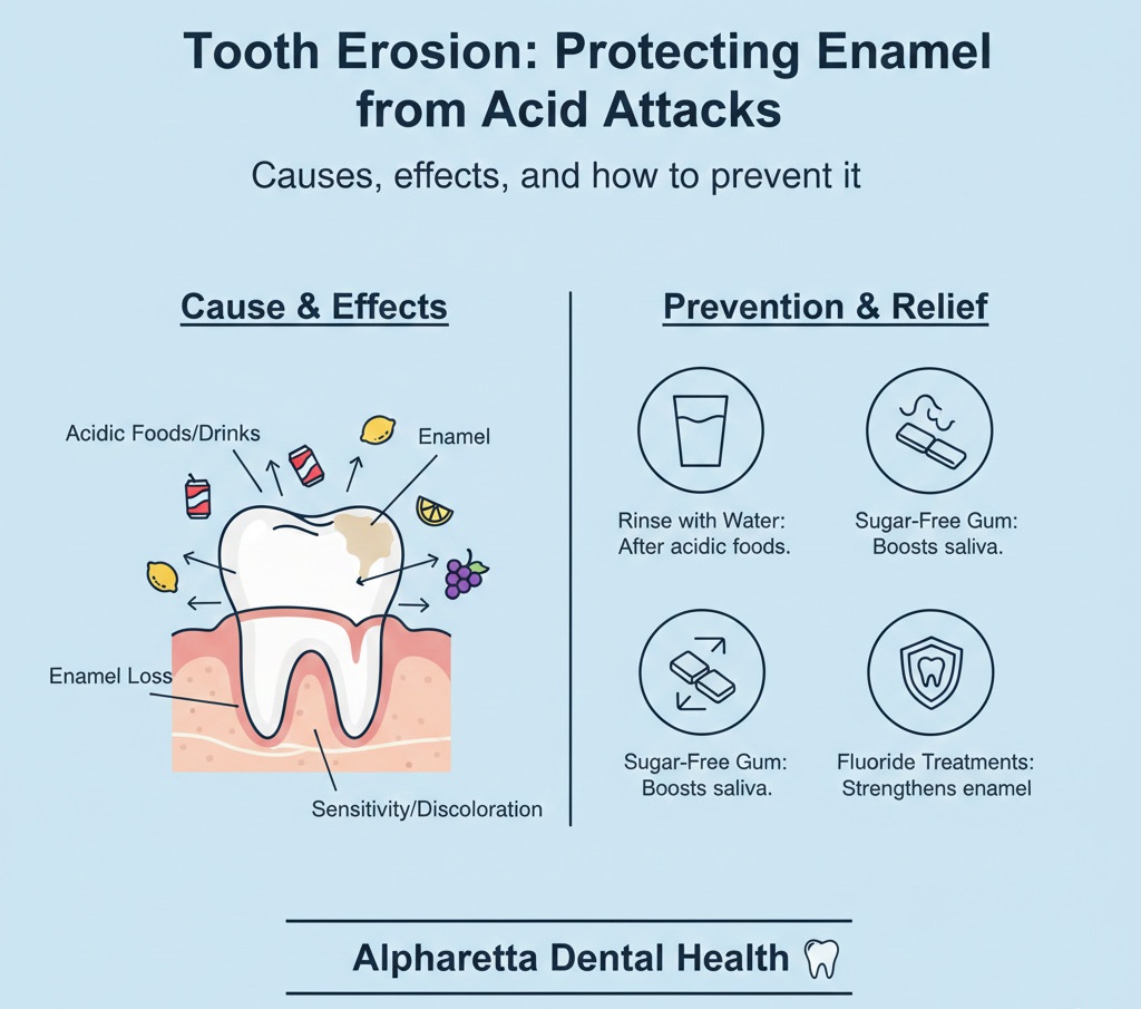 Limit acidic foods and beverages, and rinse your mouth with water afterwards. Use fluoride toothpaste to strengthen enamel, and chew sugar-free gum to stimulate saliva production. Regular dental check-ups also help identify early signs of enamel erosion.